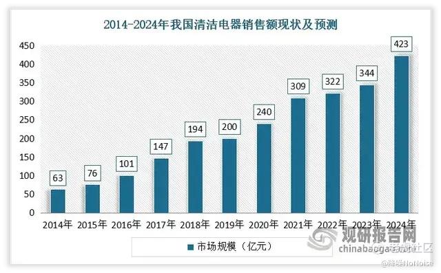▲2014-2024年我国清洁电器销售额现状及预测