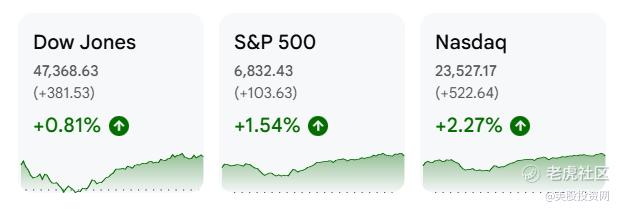 今日美股市场实现全线强劲反弹,纳指收盘飙升2.27%,标普500上涨1.54%,双双收复了上周的大部分失地。