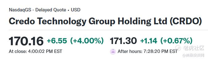 与此同时,高效数据传输方案提供商Credo Technology( $Credo Technology Group Holding Ltd(CRDO)$ )今日亦上涨4%,股价来到170.16美元。