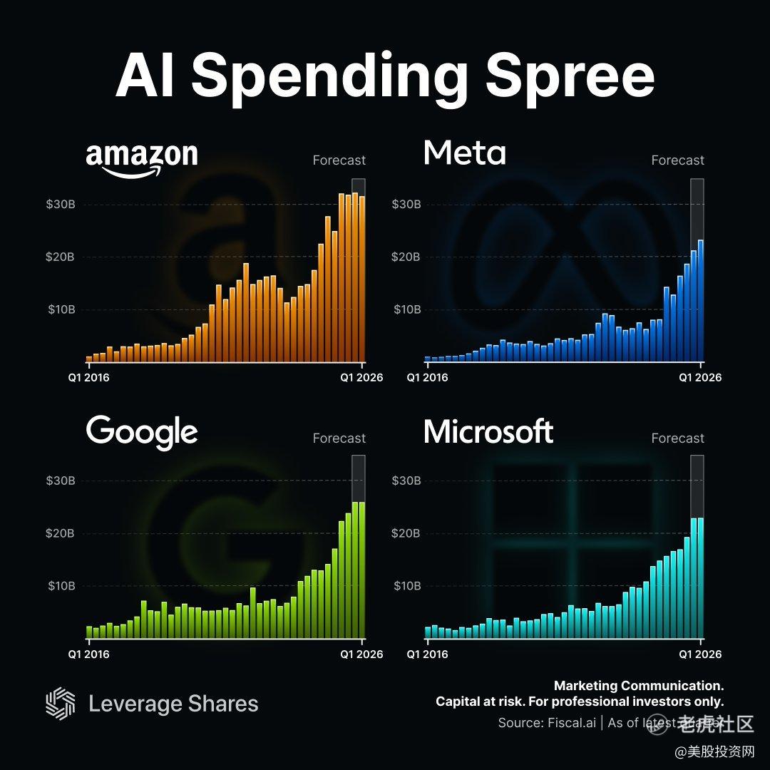 从全球云厂商的投资趋势来看,四大云端巨头(亚马逊、Google、微软、Meta)的资本开支(CapEx)仍处于快速成长阶段,且前景乐观。