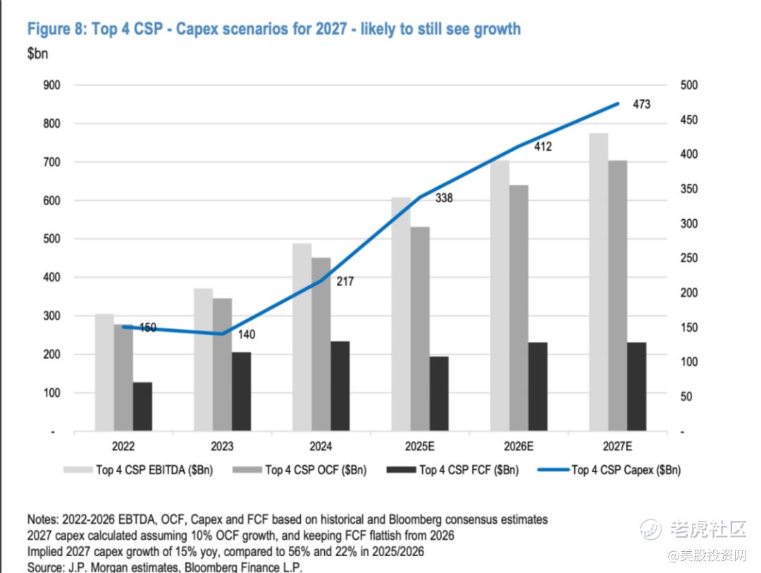 根据摩根大通的最新预测,到2027年,这四家CSP厂商的资本开支预计将达到惊人的4730亿美元。