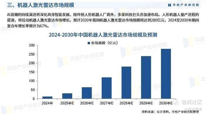 华经产业研究院预计,2030年我国机器人激光雷达市场规模将达到280亿元。