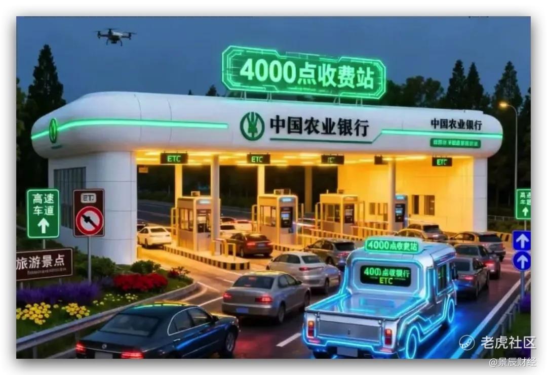 农业银行成为中国版「英伟达」,股民戏称「银伟达」,还有好多AI图片,说每次4000点就收费,因为收费站是农业银行。