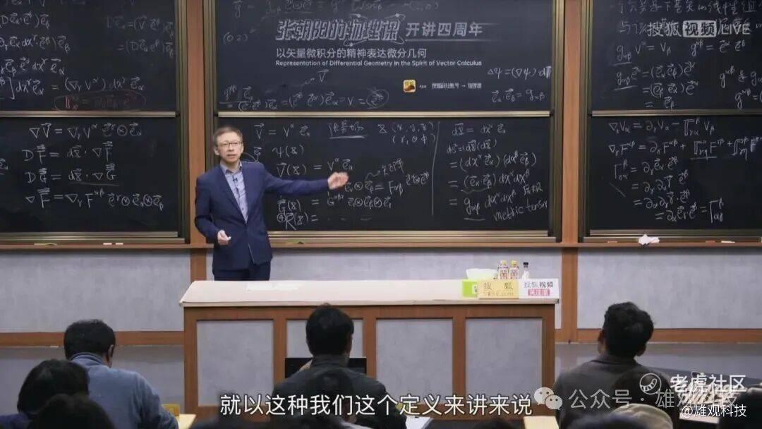在他的物理课中,你能看到他的硬核是真实的,他让科学不再高冷,让知识回归大众。从量子力学的波函数到广义相对论的张量分析,张朝阳坚持用数学语言揭示物理本质。这种硬核成了课程最醒目的标签,也是其无法被复制的核心竞争力。无论是对话诺奖得主、走进清华讲课,还是用物理解读硬科技,这些高光场面,无不建立在其扎实的专业功底之上,也让张朝阳成功区别于其他任何做科普的企业家,仿佛他不是在讲物理,而是在用物理思维重构商业与人生的底层逻辑。