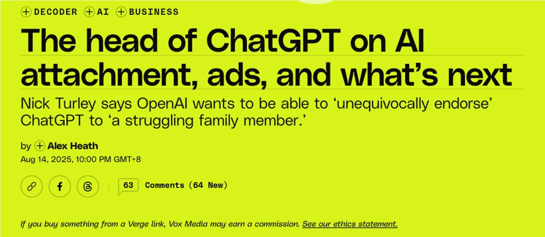 ▲OpenAI 的首席产品官 Nick Turley 在某次采访中进行反思