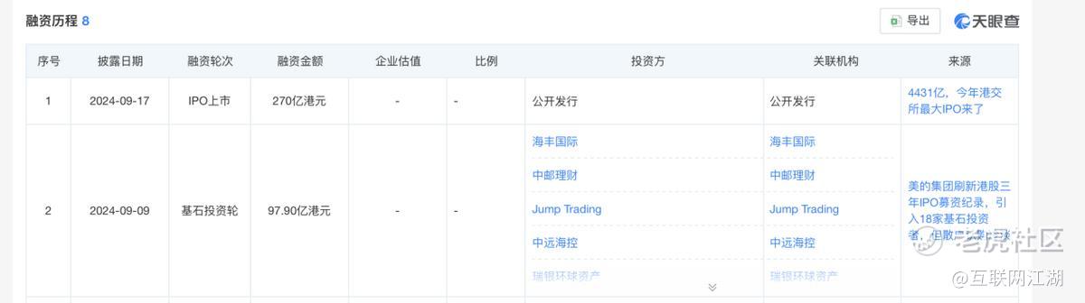 天眼查APP信息显示,2024年8月美的赴港上市。如今,美的港股市值超过6800亿港元。