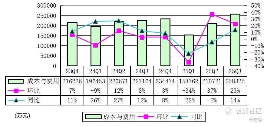 满帮2025年第三季成本与费用为25.83亿元,较上年同期的22.72亿元增长14%。