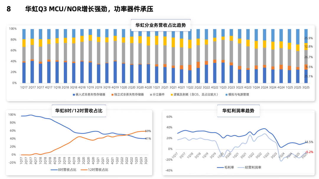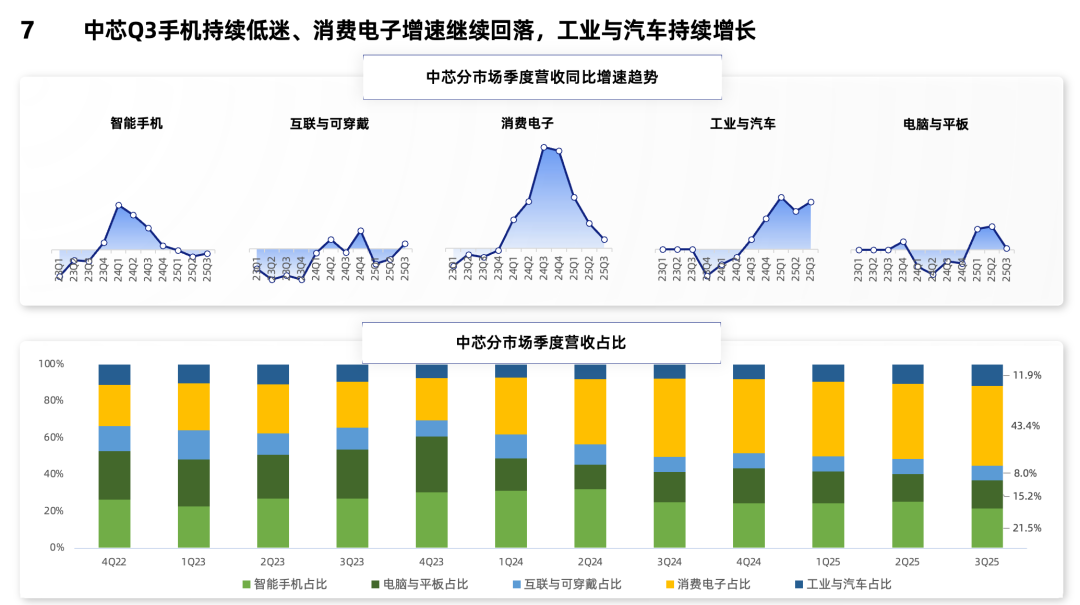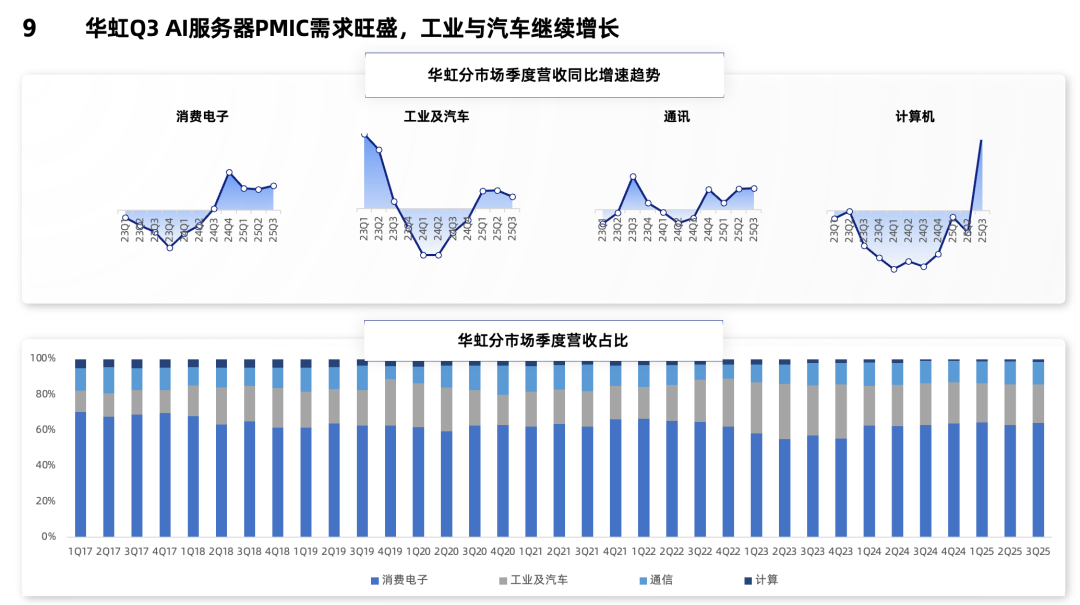Q3因订单出货推迟以及客户需求季节性影响手机业务,消费电子、电脑与平板等领域收入实现同环比增长;存储涨价潮双刃剑:当前阶段推动客户拉单,明年在不确定性下则抑制客户下单;