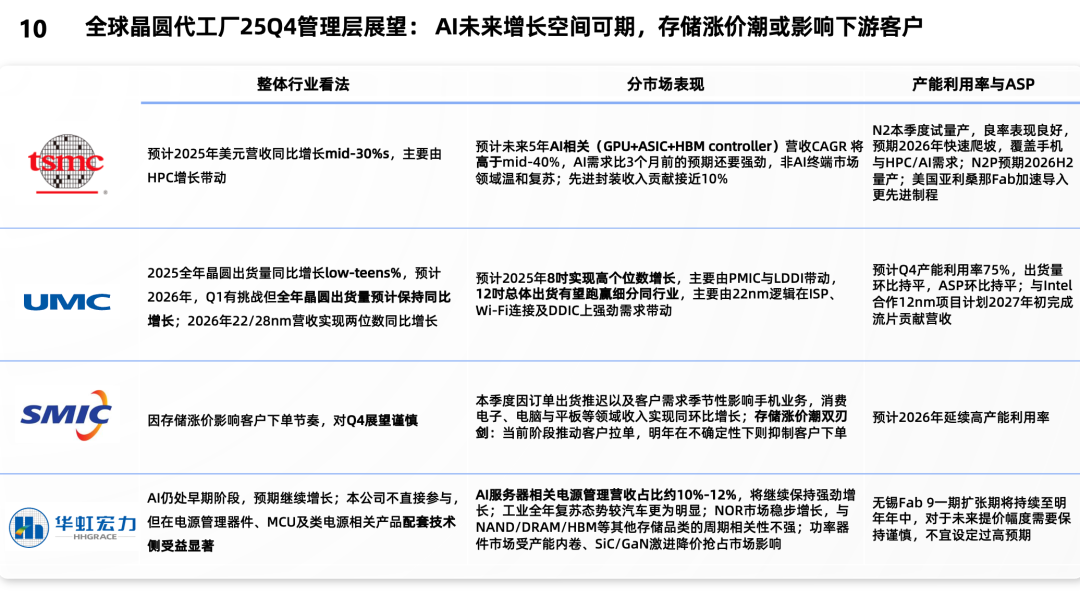 《全球晶圆代工厂24Q4:泛AI需求持续扩散,汽车、工业有望开始复苏》