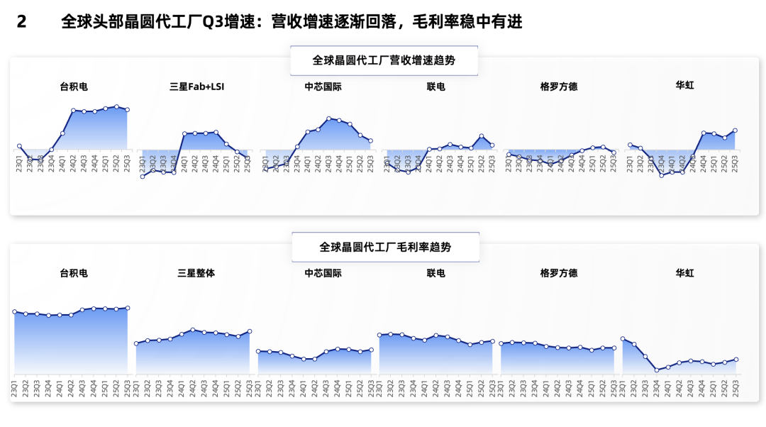 总的来说,2025年Q3全球头部晶圆代工厂继续高歌猛进,Tier1先进制程增速领跑,Tier2成熟工艺也喝到AI汤。存储涨价潮对下游客户订单的影响或成为明年制约Tier2成熟工艺厂商增长最大隐患。