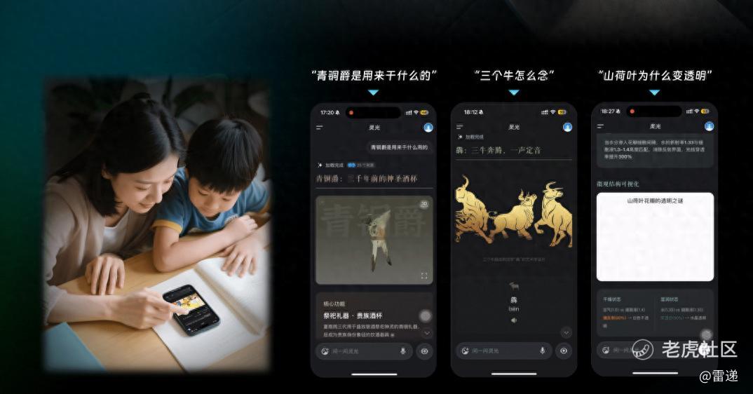 比如在教育场景下,用户咨询灵光知识性问题,灵光能够洞察并提炼知识点,有逻辑有层次地展示,并能生成3D实物动图、可互动的示意表格等,让复杂信息一目了然。