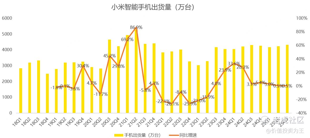 从销量上看,小米手机三季度出货量4330万,同比增长0.5%: