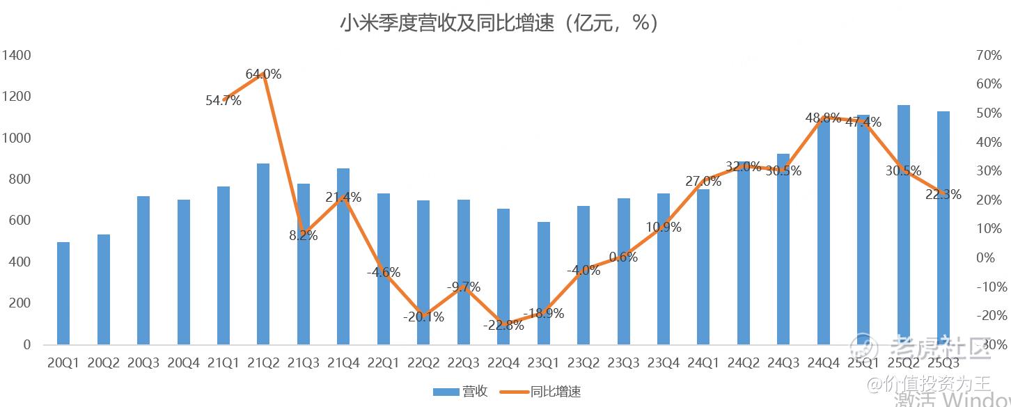 其中,小米三季度营收1131亿,同比增长22.3%,略超分析师预期的1125亿:
