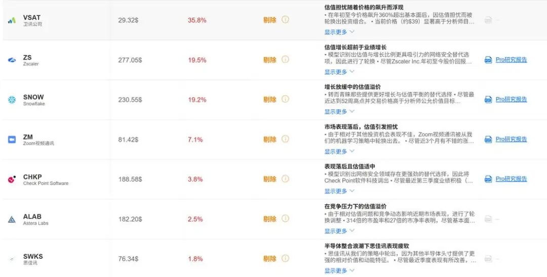 我们科技巨头策略的最新调仓便是一个绝佳例证:在经历数周上升后,AI 果断从其策略中移除了部分大升的赢家,如 ViaSat、Zscaler 和 Snowflake。并非因为这些公司突然变得糟糕,而是因为估值、动能和风险状况已经发生了变化。
