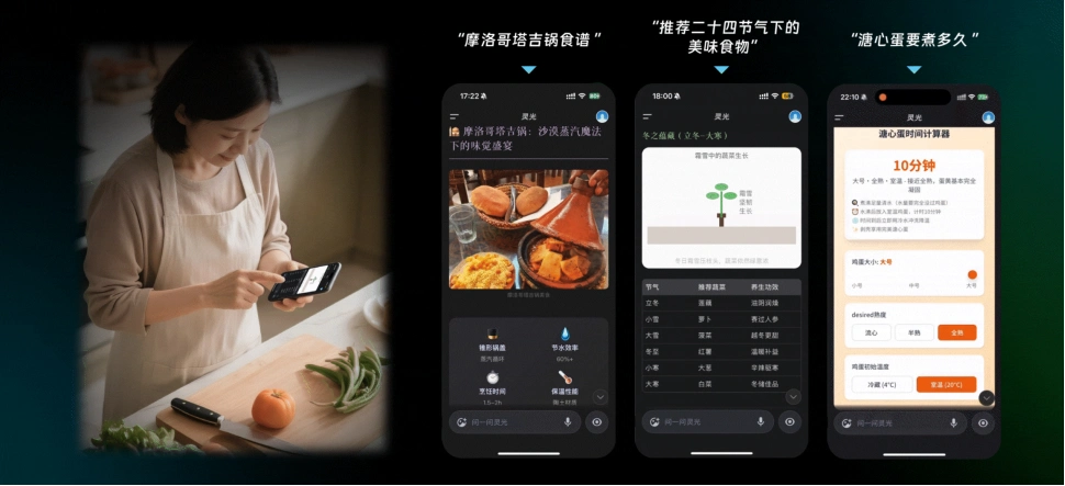而“灵光”的路线则和Gemini3.0同频,都主打多模态的生成能力和小应用。用户最感兴趣的可能是,灵光开创性地在移动端实现“自然语言30秒生成小应用”,并且可编辑可交互可分享。作为全代码生成多模态内容的AI助手,灵光首批上线三大功能——“灵光对话”、“灵光闪应用”、“灵光开眼”,支持3D、音视频、图表、动画、地图等全模态信息输出,对话更生动,交流更高效。