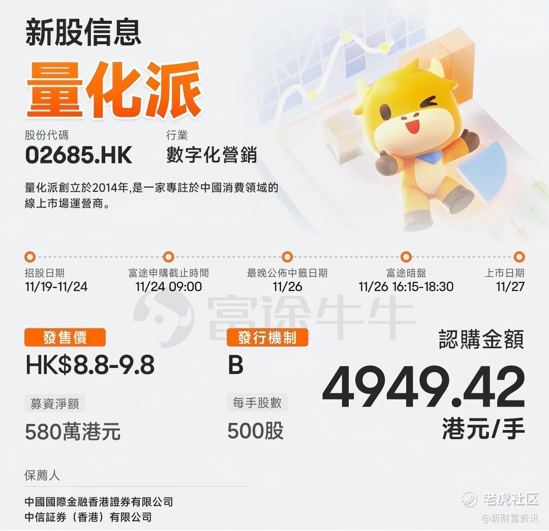 老铁们,今天继续讲新股,最近港股新股消息扎堆,量化派(02685)的登场直接勾起了小新的好奇心。这家即将上市的公司到底成色如何?打新是肉签还是陷阱?今天咱们就掰开揉碎了好好聊聊。