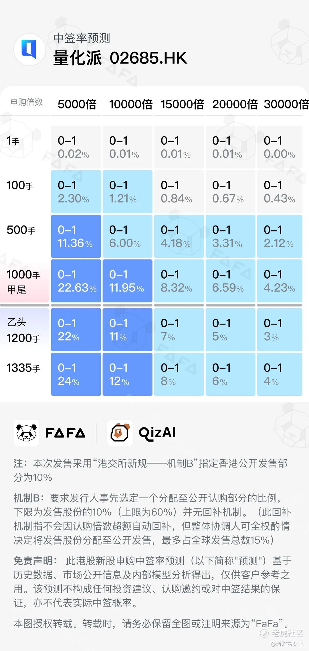 迷你发行量直接导致中签率低到离谱。参考之前类似规模的新股,比如某科技股全球发售1200万股,香港公开发售120万股,最后一手中签率仅0.5%,好多人申购几十手都颗粒无收。量化派这情况,中签概率只会更低,别抱太大幻想。