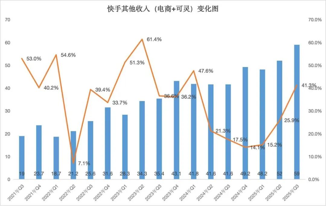 与此同时,快手也披露,主要包括电商业务和可灵业务的“其他服务”营收为59亿元,同比增长41.3%。