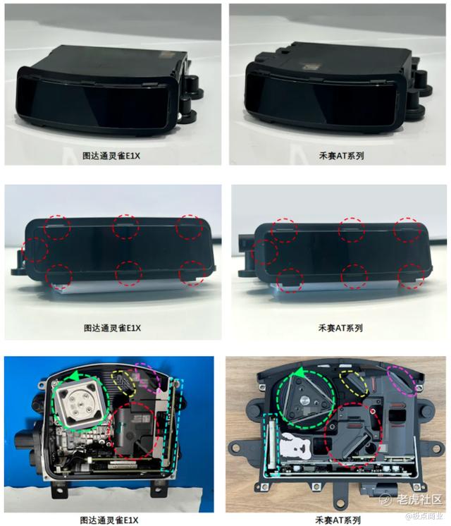 从产品拆机图来看,灵雀E1X在外观、接口设计、内部扫描架构和光路设计等关键方面,与禾赛的AT系列确实有很高的相似程度。AT系列是禾赛于2024年4月推出的远距激光雷达,获得比亚迪、奇瑞、长城、长安等十多家国内头部车企的几十款车型定点合作,并于2025年第一季度启动大规模量产。