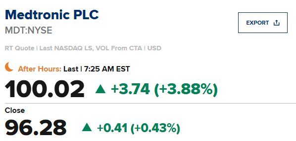 Medtronic(MDT)第二季度每股收益为1.36美元,比市场预期值1.31美元高出0.05美元;营收同比增长6.6%至89.6亿美元,市场预期值88.7亿美元。该公司预计26财年每股收益为5.62-5.66美元,市场预期值5.62美元。前值5.60-5.66美元。