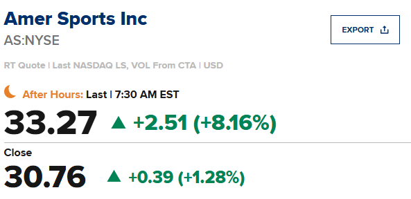 Amer Sports (AS)第三季度每股收益为0.33美元,比市场预期值0.25美元高出0.08美元;营收同比增长29.7%至17.6亿美元,市场预期值17.2亿美元。该公司预计25财年每股收益为0.88-0.92美元,市场预期值0.84美元;预计25财年营业收入63.75 - 64.27亿美元,市场预期值63.8亿美元。