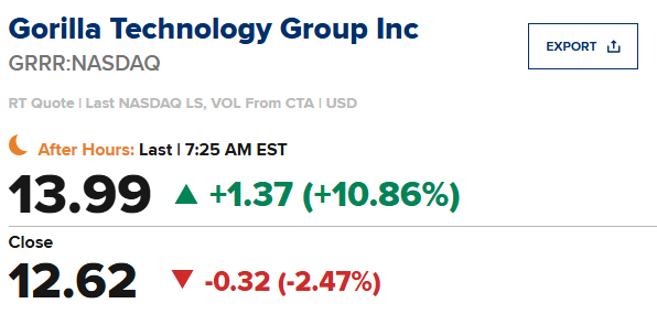 Gorilla Technology Group(GRRR)第三季度每股收益为0.24美元,市场预期值0.11美元。营收同比增长32%至2650万美元,市场预期值2650万美元。
