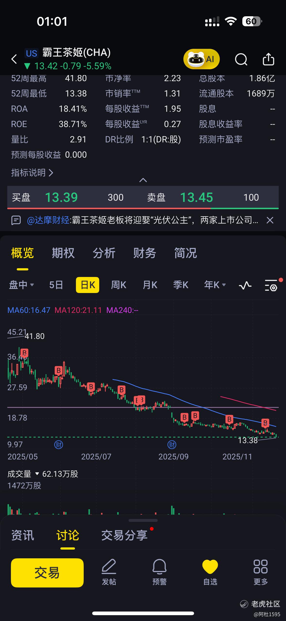 - 霸王茶姬有毒·11-21精彩霸王茶姬割得都是真心看好它的,就这样报答投资者,一定是内部出问题了点赞举报