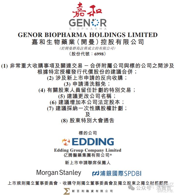 **获悉,早在2020年10月7日就上市的嘉和生物-B(6998.HK)于2025年11月14日再次提交上市申请,这是继2025年4月15日递表失效后的再次申请。本次仍聚焦与「亿腾医药」的非常重大收购事项、反向收购相关的新上市申请、清洗豁免申请及建议更名为「亿腾嘉和医药集团有限公司」(下称“亿腾嘉和”)等核心事宜。