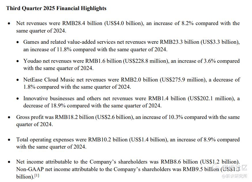 网易发布2025年Q3财报:营收净利增长但均不及预期,游戏业务仍在硬扛起网易业绩