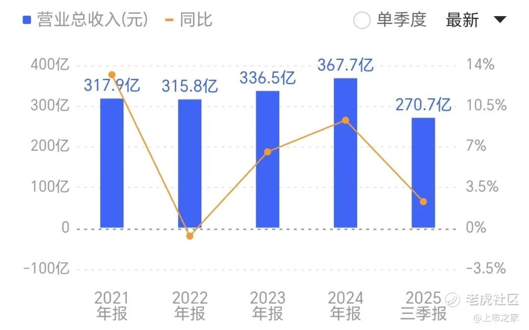财务数据方面,公司近年呈现"营收稳增、利润波动"态势。2024年实现营业收入367.7亿元,同比增长9.27%;归母净利润10.86亿元,同比下降44.74%。