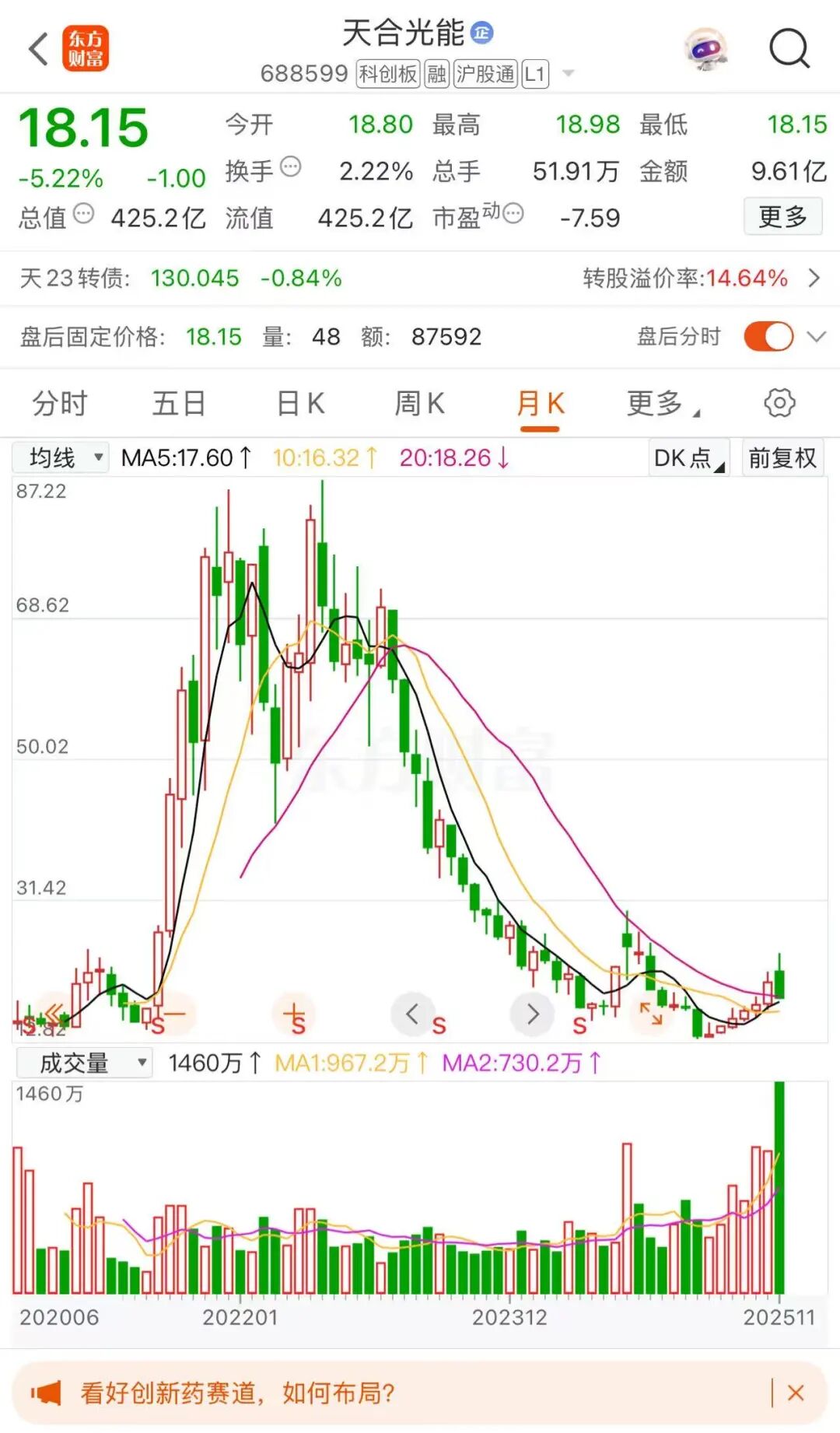 4 、2 个董事长遇到的主要问题还是 2 个公司的股价,霸王茶姬上市后已经连跌 8 个月,天合光能亏损几十亿。不知道 2 个公司能不能跨界,比如在所有的茶饮店装光伏?所有的光伏场所提供茶饮?