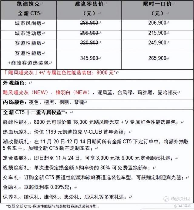 据「TMT星球」了解,此次全新CT5发布了V专属性能车色「飓风哑光灰」及V专属红色性能选装包:包括专属Brembo V标涂装红色高性能卡钳、赛道专属红色钥匙等性能装备。同时,用户还可享受12重丰富豪礼,包括以8000元解锁价值18000元热血装备的巅峰性能礼、限时3000元抵6000元的定金膨胀礼、限时赠送价值1199元V-CLUB会籍的热血玩家礼等。