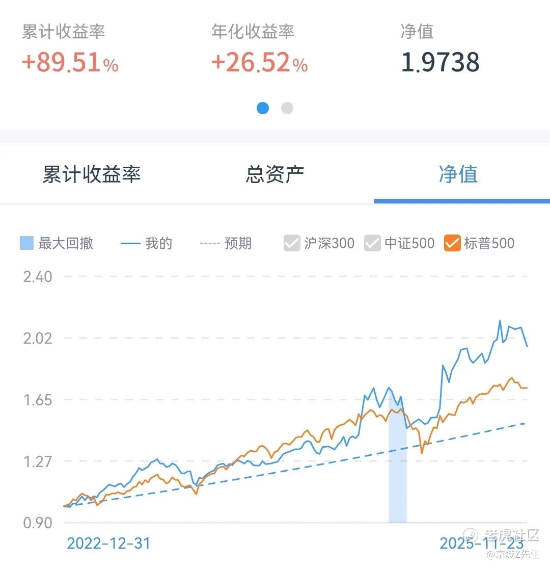 2025 年内标普 500 指数 上涨 12.26%,2025 年内我的实盘净值 上涨 23.21%(年初净值为1.60,本周净值1.97)。