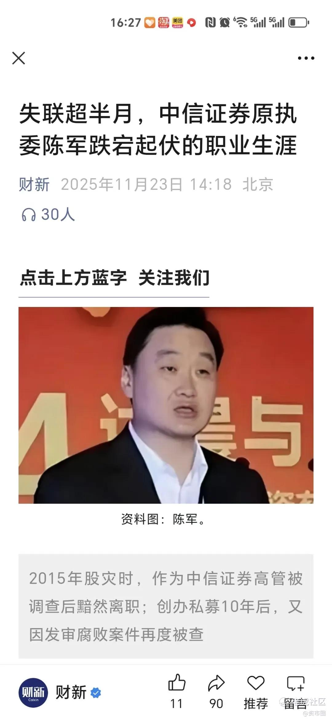 2015年12月,中信证券曾公告称,公司执行委员会委员陈军等人“暂时失联”,当时有媒体称两人正在协助调查。