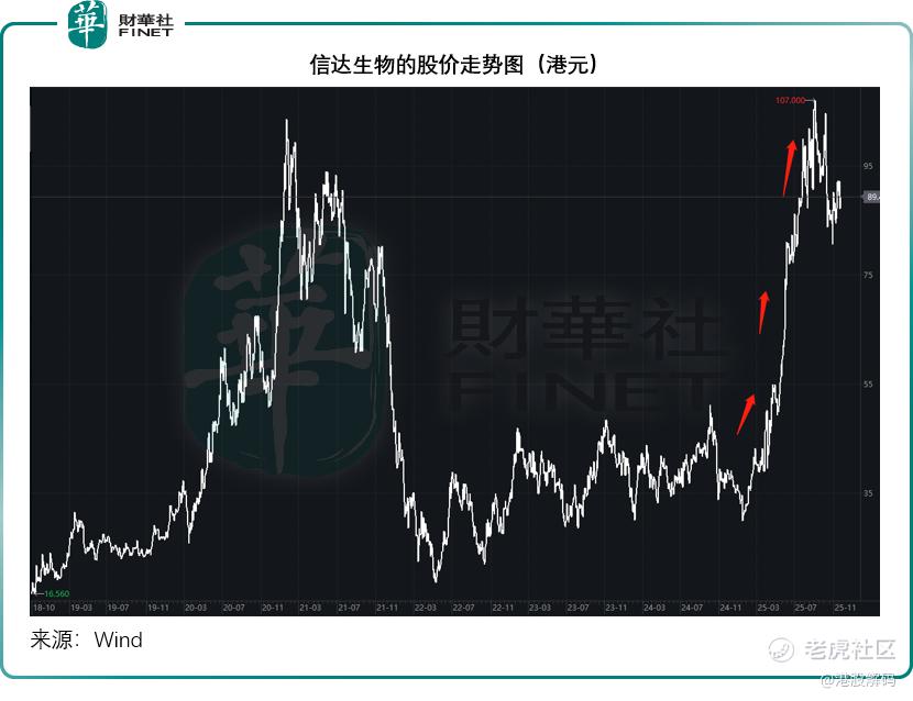按现价89.90港元计算,信达生物今年以来的股价涨幅已达145.63%,市值达1,541亿港元。