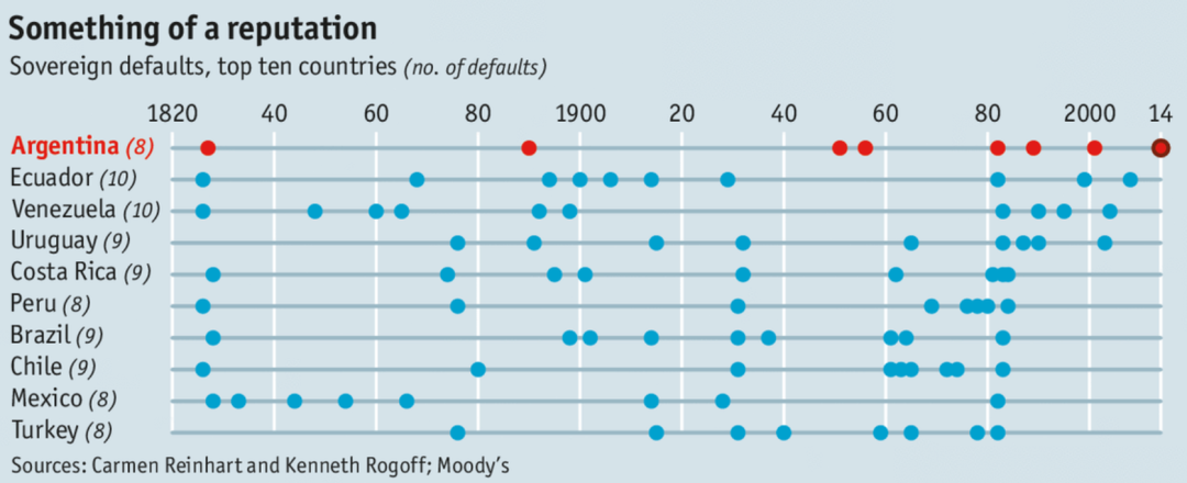 注:从1820年到2014年,阿根廷主权国债违约8次,可谓破产界的老司机。