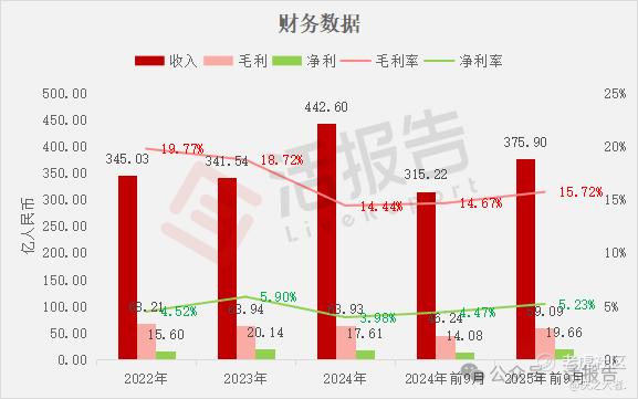 收入分别约为人民币345.03亿、341.54亿、442.60亿、315.22亿、375.90亿,2025年前9月同比+19.25%;