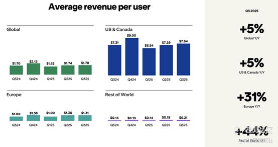 投资者关注的另一焦点是Pinterest放缓的ARPU增速——第三季度,美国和加拿大地区ARPU同比增长5%,全球ARPU同比增速也为5%。