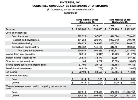 接下来,我们详细分析Pinterest最新的第三季度财报表现:
