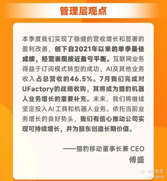 猎豹的投资逻辑已从“困境反转”转向“成长确认”:互联网业务提供稳定现金流与盈利基础,AI 与机器人业务打开长期增长空间,2.8 亿美元净现金构筑了坚实安全垫。