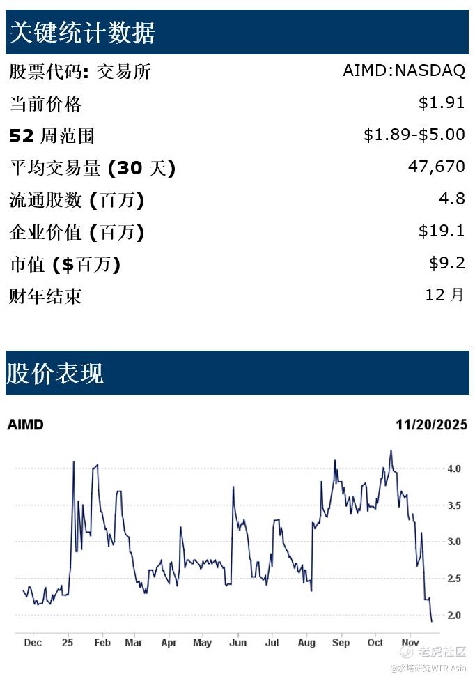 · 在最新一期水塔研究小盘股焦点中,我们再次邀请到Ainos, Inc.(纳斯达克: AIMD)企业发展总监Jack Lu,与节目主持人、水塔研究 副主席、联合创始人兼首席市场官Tim Gerdeman一起,讨论公司近期公布的3Q25财报关键要点。Jack Lu还分享了Ainos近期与Topco和NEXCOM达成的战略合作,新增的七项专利持续拓宽并夯实知识产权护城河,以及2026年发展路线图,包括大规模商业化扩张、工业场景部署以及亚洲以外地区的扩张计划。感兴趣的读者可在Apple Podcasts、Spotify或我们的官网收听该期播客。