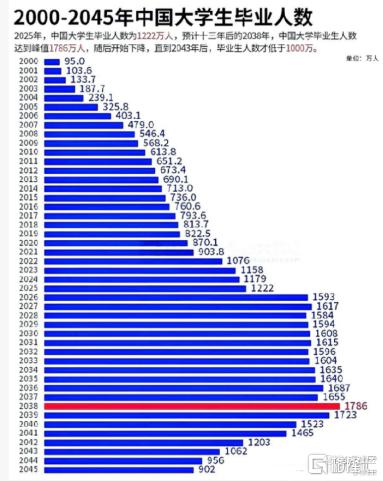 近年来,高校毕业生人数屡创新高,就业竞争日趋激烈。数据显示,2025年,我国高校毕业生总量已攀升至1222万人。2026年预计达到1593万,且未来数十年间,高校毕业生数量将不断刷新纪录,到2038年预计迎来1786万的峰值。