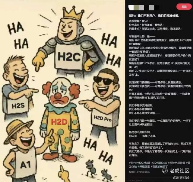 这在3D打印圈引发震动,拓竹显得阵脚大乱,以提前发布新品和给老款降价的方式来进行防守反击,但此举使得老款的第一批铁粉深感背刺,一位购入过拓竹全部机器的深度创作者,原本是「逢拓竹新品必买」,现在表示不会再「无脑冲」了,而是倾向于保持观望。小红书上更是可以刷到不少老用户吐槽的梗图。
