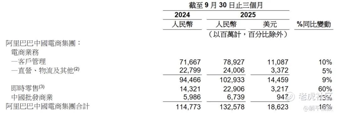 从收入端看,电商业务中表现亮眼的CMR收入同比增长10%至789.3亿元,这一增速的支撑因素包括全站推等营销工具渗透率的提升,以及去年9月开始征收的软件服务费带来的基数效应。财报还特别指出,即时零售业务规模的扩大和淘宝App月活跃消费者的快速增长,也对CMR形成了正向拉动。