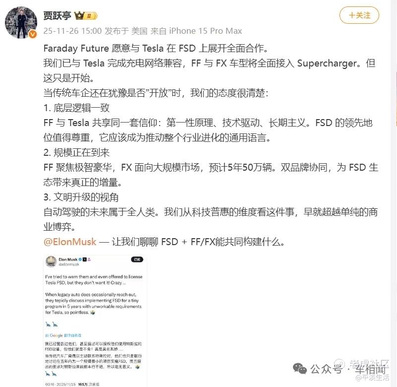 $Faraday Future Intelligent Electric Inc(FFAI)$ FF愿意与特斯拉开展全面合作