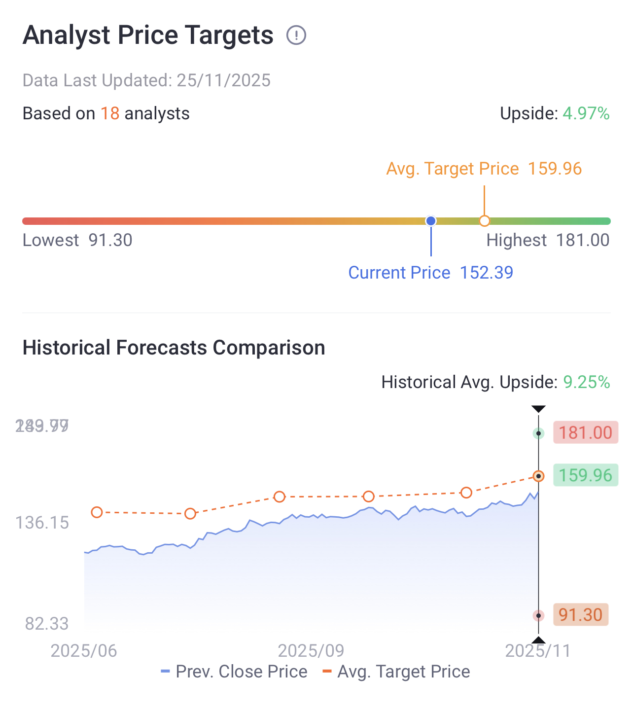近期财务亮点:2025年第三季度,收入增长了9.3%,达创纪录的3213亿美元,毛利润增长了15.8%,达115亿美元,GAAP稀释每股收益升至7.96美元。在最后一个季度,收入同比增长8.7%,达到807亿美元,而调整后的稀释每股收益跃升19.8%,达4.00美元;美国业务的运营收入飙升了29%,完全抵消了国际业务下降13%的影响。董事会最近上调了2026财年的每股收益指导,并宣布了0.55美元的季度股息,继续采取对股东友好的资本分配方针。