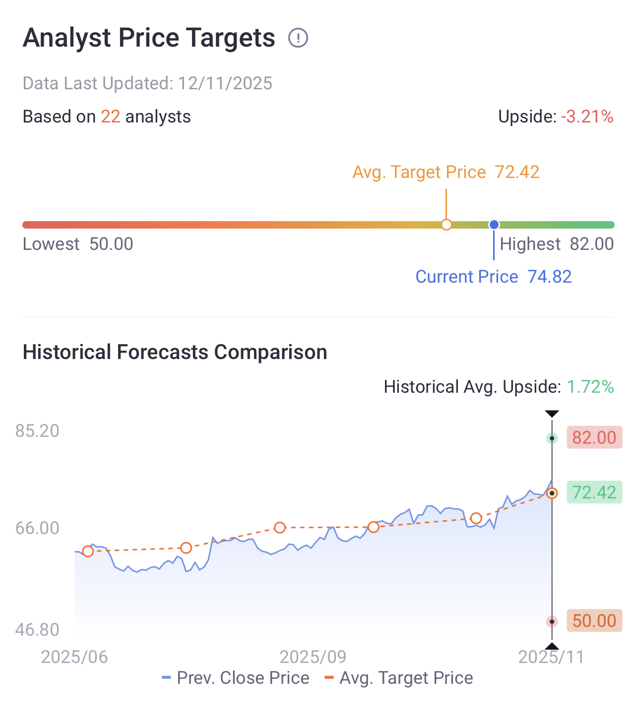 近期财务亮点:2025年第三季度,Eli Lilly报告了176亿美元的收入,同比增长54%。净利润为55.8亿美元,每股收益为6.21美元。Mounjaro创造了65.2亿美元的收入,同比增长109%,而Zepbound贡献了35.9亿美元,同比增长184%。公司将全年的收入预期上调至630亿美元至635亿美元,调整后的每股利润预期为23美元至23.70美元。