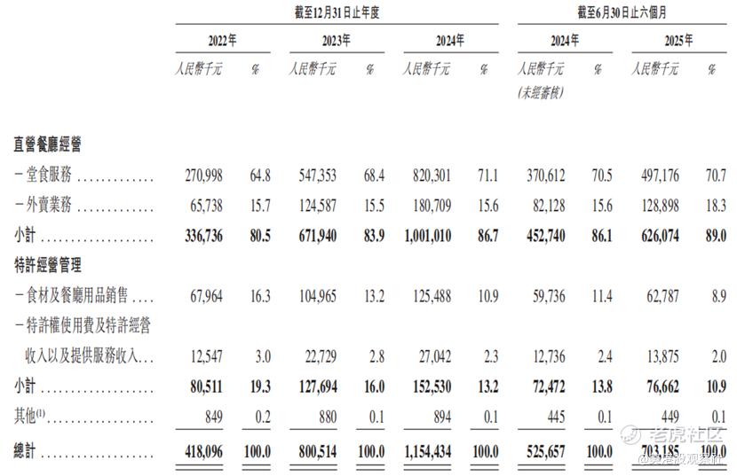 遇见小面的主营业务围绕中式面食及相关产品的研发、生产与销售展开,以重庆小面系列产品为核心,构建了涵盖面条、米饭、小吃、饮料等多品类的产品矩阵,既保留了川渝风味的麻辣特色,也推出了多款不辣菜品以满足不同地域消费者的口味需求。公司的经营模式分为直营与特许经营两类,其中直营模式由公司直接负责餐厅的选址、装修、运营及管理,确保品牌标准的严格执行;特许经营模式则通过向特许经营商提供品牌授权、食材供应及管理服务,快速拓展市场覆盖范围,两类模式协同发展形成了高效的扩张体系。截至2025年6月30日,公司直营餐厅数量达331家,特许经营餐厅86家,特许经营业务自2019年启动以来稳步增长,成为公司网络拓展的重要补充。