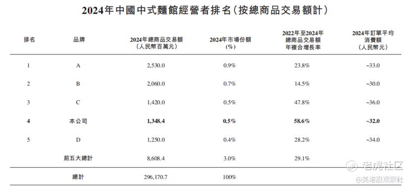 中国中式面馆市场正处于快速增长阶段,行业规模持续扩容。根据弗若斯特沙利文数据,中国中式面馆市场的总商品交易额从2020年的1833亿元增长至2024年的2962亿元,年复合增长率达12.7%;受益于城市化进程推进、居民可支配收入提升及外出就餐比例增加,预计到2029年,其总商品交易额将达到5100亿元,2025年至2029年的年复合增长率为10.9%。其中,川渝风味面馆市场表现尤为突出,2020年至2024年总商品交易额年复合增长率达12.8%,预计2029年将增至1357亿元,年复合增长率13.2%,在各区域风味面馆市场中增速最快,为公司提供了广阔的市场空间。