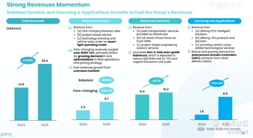 先看现实数据:小马智行的 Robotaxi 在广州已实现单车盈利,整个 Robotaxi 业务单季度营收达到 4770 万元。一旦明年在运营车辆规模突破 3000 辆,业务收入将真正进入几何级上升轨道。